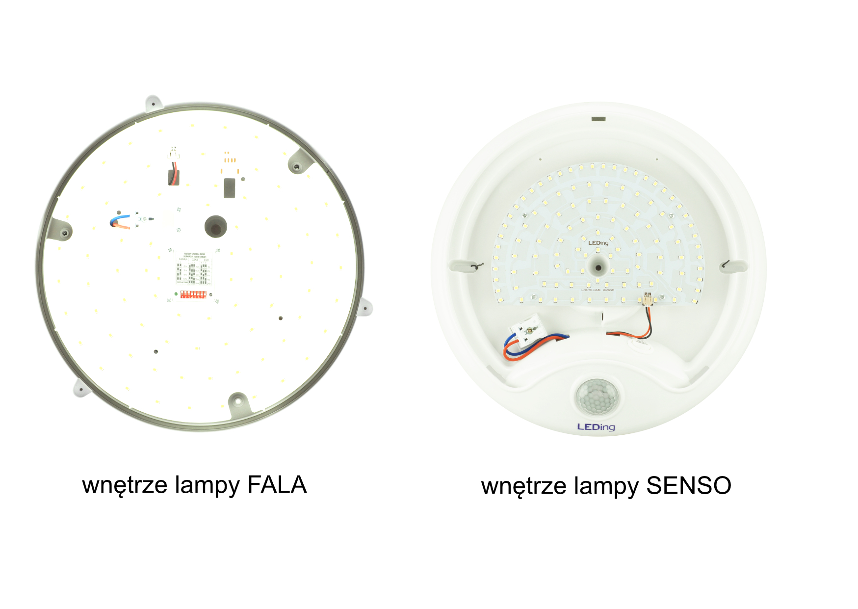 Lampy SENSO, FALA, PLAZA, SOL, CANTINA również wyposażone są w wymienne źródła LED.